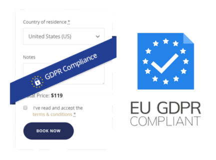 Al realizar una reserva, todas las reservas incluyen casillas de verificación. Esto significa que se acepta el RGPD (Reglamento General de Protección de Datos).